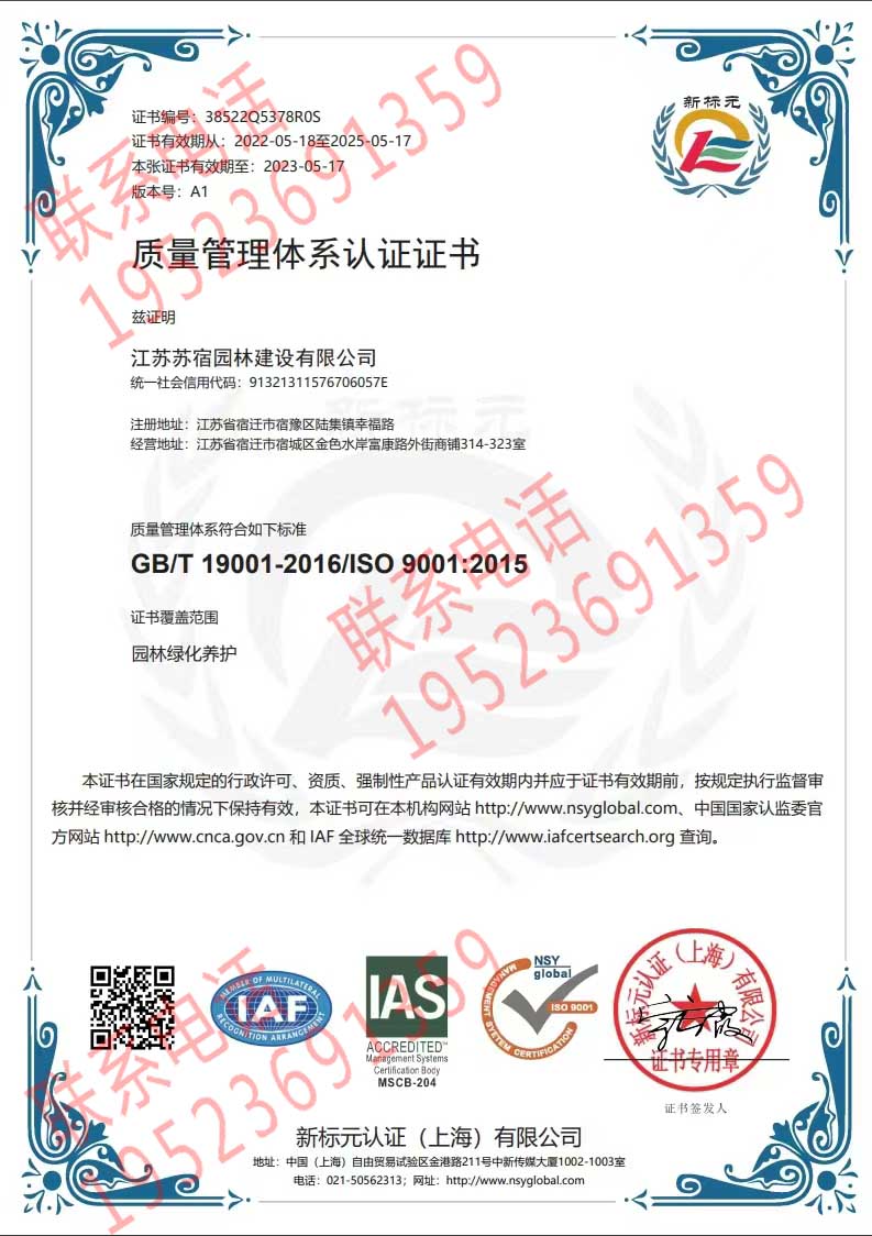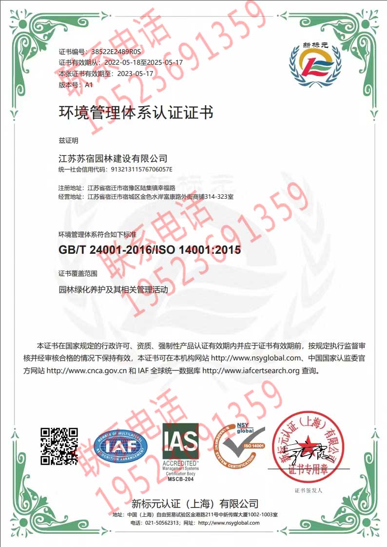 恭喜江蘇蘇宿園林建設有限公司獲得ISO三體系認證證書