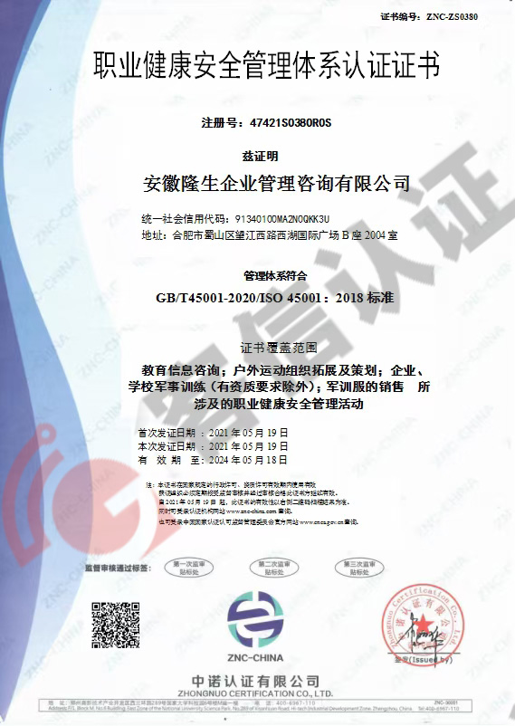 恭喜安徽隆生企業(yè)管理咨詢有限公司獲取ISO三體系認(rèn)證證書