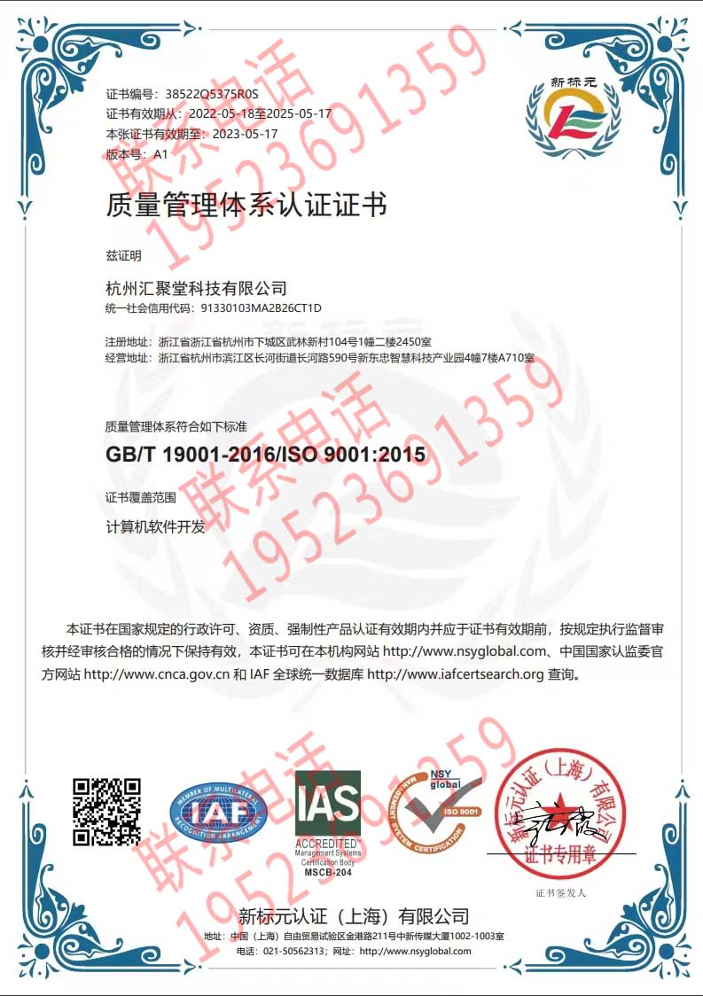 恭喜杭州匯聚堂科技有限公司獲得ISO三體系認(rèn)證證書
